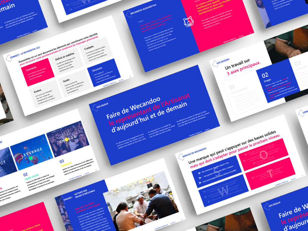 Design Powerpoint, nouvelle plateforme de marque et recommandations stratégiques.